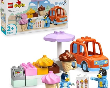 LEGO Duplo Bluey Excursión a la Heladería con Bluey - Juego Educativo con Coche de Juguete, Puesto de Helados y 2 Figuras Inc. Bandit