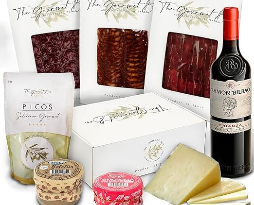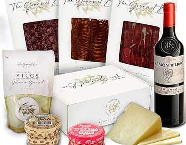 Esta Gourmet Box no es solo un detalle: es una experiencia completa. Una selección cuidada de jamón, salchichón y chorizo ibérico de bellota, queso de oveja 100%, patés artesanos y unos picos crujientes que acompañan a la perfección. Todo ello rematado con un vino Ramón Bilbao, equilibrado y elegante.
